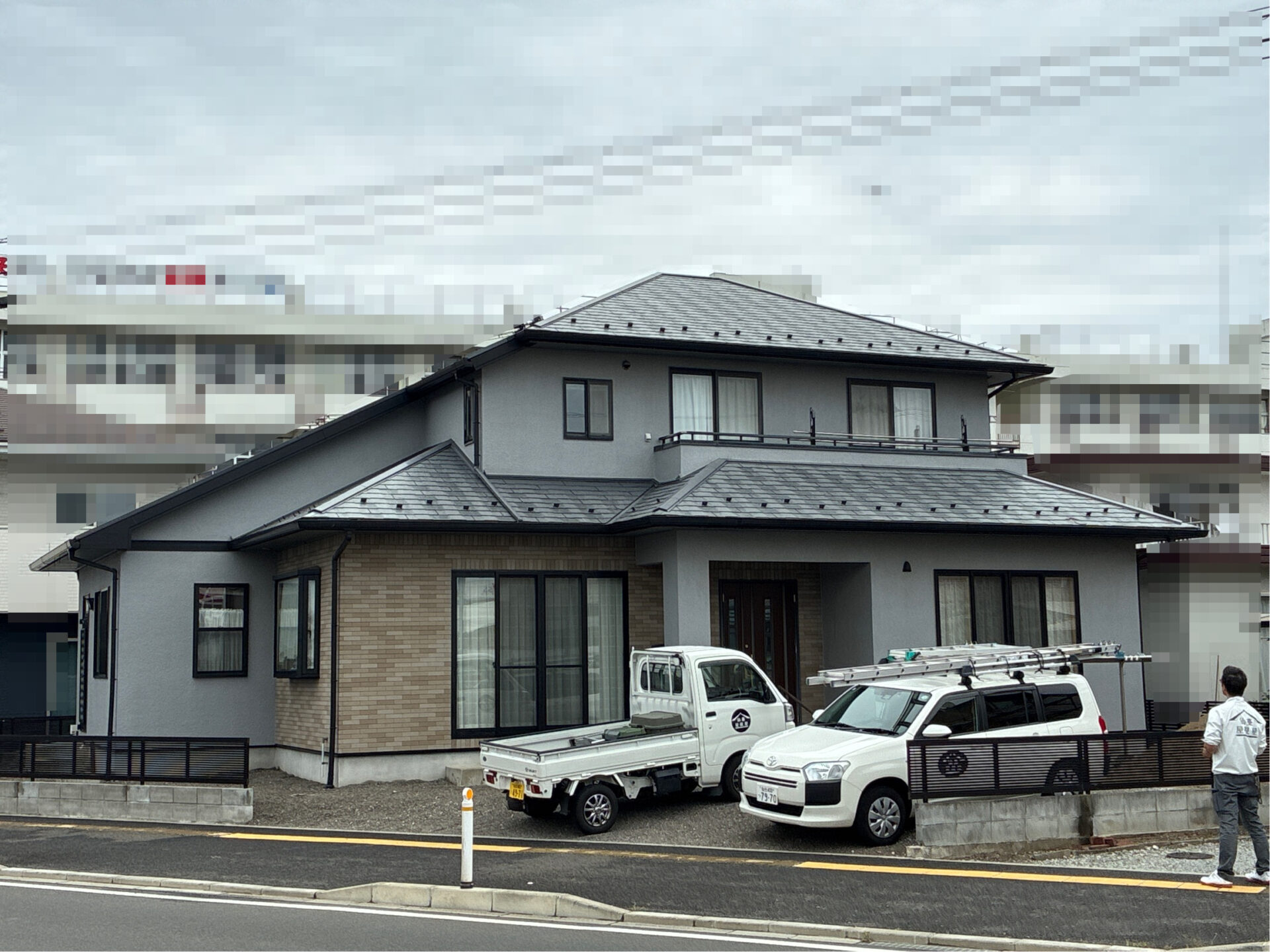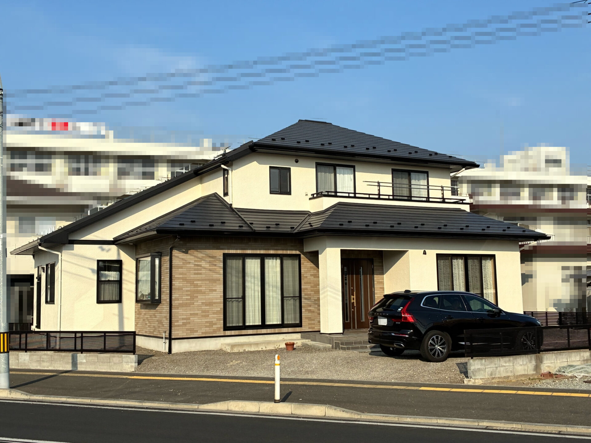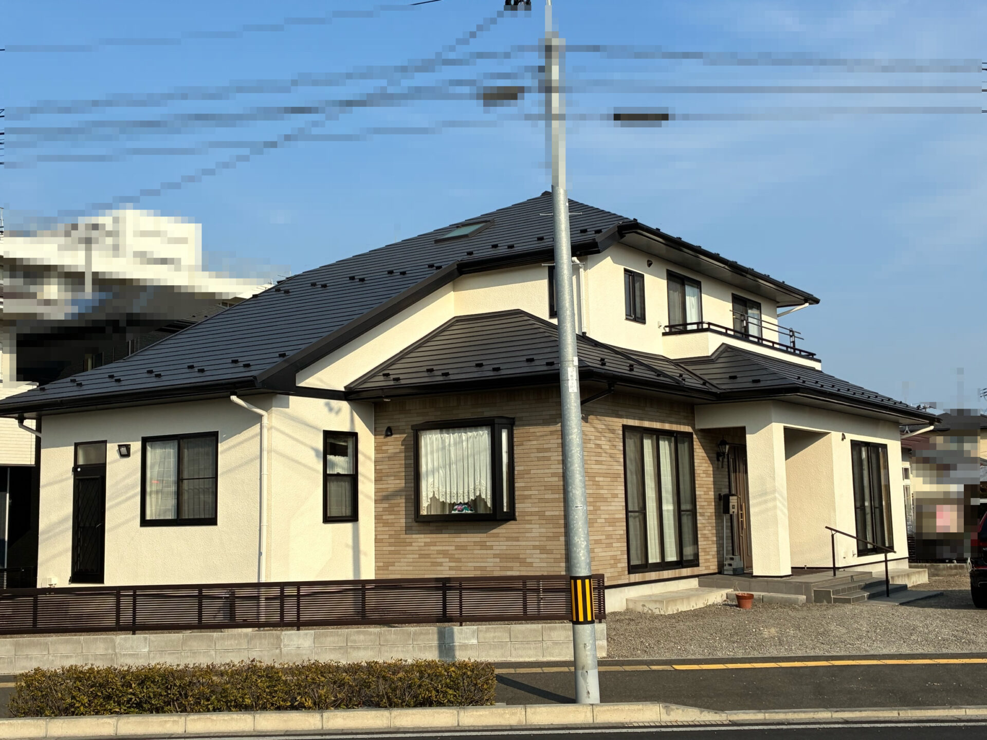 外壁塗装は元々のグレー系も素敵でしたが、白系に塗装することで明るくやさしい印象となり、屋根とのコントラストも美しく仕上がりました。