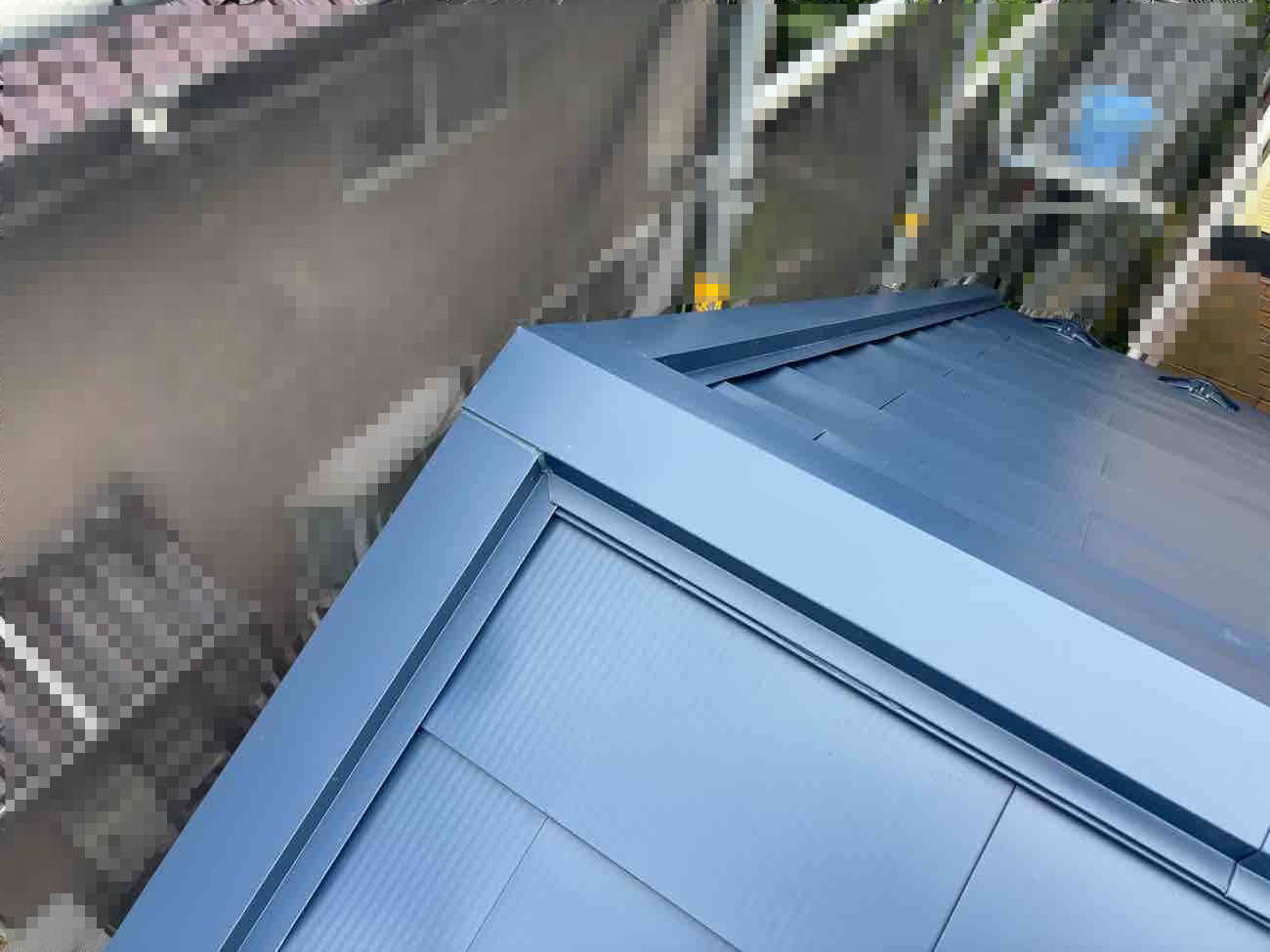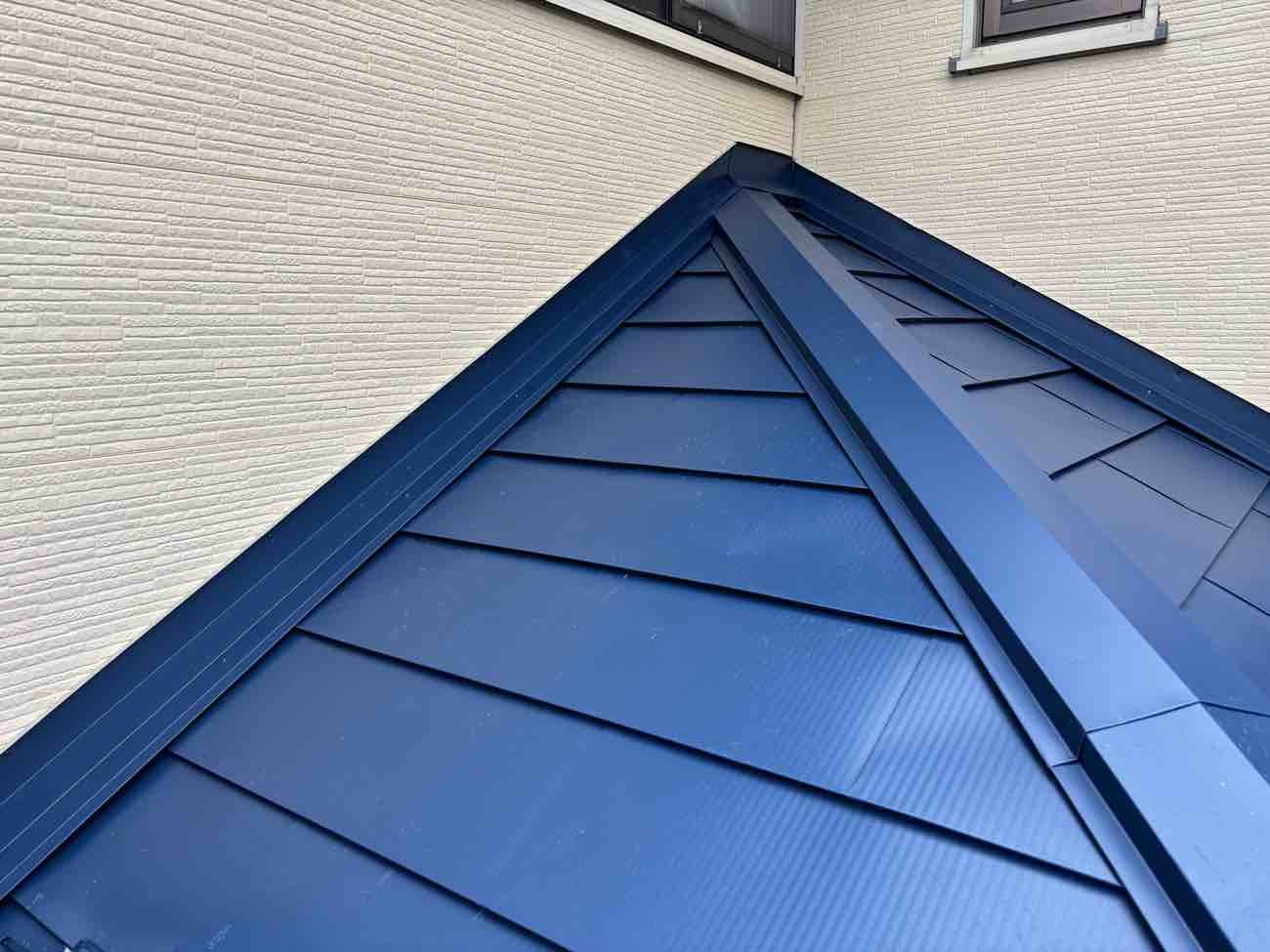 東面窓上の漏水箇所について、窓まわりおよび屋根と外壁の取り合い部分にある見切縁へシーリング処理を施し雨漏れを予防するとともに、屋根は既存屋根を活かしたカバー工法にて天晴ルーフを施工し、防水性と耐久性を向上させました。